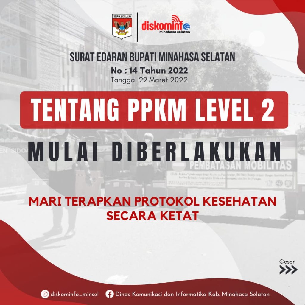 SURAT EDARAN BUPATI NOMOR 14 TAHUN 2022 TENTANG PEMBERLAKUAN PEMBATASAN KEGIATAN MASYARAKAT (PPKM) LEVEL 2 DALAM RANGKA PENGENDALIAN PENYEBARAN CORONA VIRUS DISEASE 2019 (COVID-19) DI KABUPATEN MINAHASA SELATAN