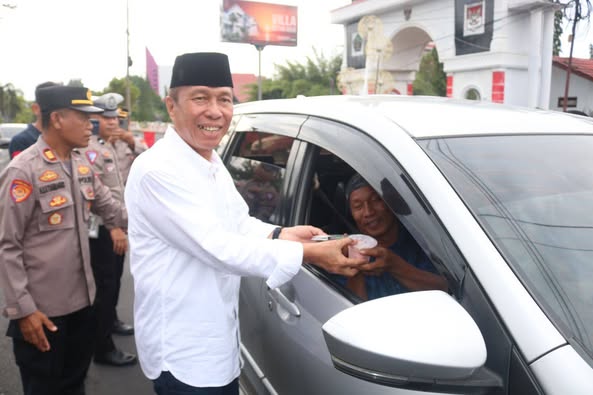 Bupati Minahasa Selatan dan Wakil Bupati Minahasa Selatan bersama Forkopimda Kabupaten Minahasa Selatan dan Jajaran, membagikan takjil gratis bagi pengendara dan penumpang kendaraan bermotor di jalur Jalan Trans Sulawesi depan Mapolres Minahasa Selatan.