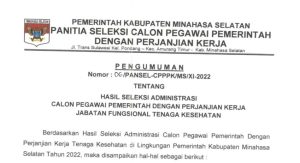 Pengumuman Hasil Seleksi Penerima Beasiswa “Minsel Perubahan” Kabupaten Minahasa Selatan Tahun 2022. Setelah melakukan Tahap Seleksi dan Verifikasi berkas, maka ditetapkan Penerima Beasiswa sebagaimana tertuang dalam Surat Keputusan Bupati Minahasa Selatan Nomor 445 Tahun 2022.