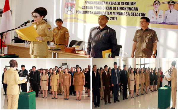 Keseriusan Bupati Minahasa Selatan Christiany Eugenia Paruntu SE untuk mempertahankan opini Wajar Tanpa Pengecualian (WTP) yang disandang oleh Pemkab Minsel terus berkumandang. Buktinya, Selasa (11/7) di ruang rapat Lantai IV Kantor Bupati, dalam acara pelantikan sekaligus pengambilan Sumpah Janji 80 Kepala Sekolah (Kepsek) yang ada di jajaran Dinas Pendidikan, Pemuda serta Olahraga Minsel, Tetty sapaan akrab Bupati Minsel mengingkatkan para Kepala Sekolah yang baru saja di lantik untuk jangan coba-coba melakukan korupsi. Saya ingatkan kepada Kepsek-kepsek yang baru saja dilantik agar jangan coba-coba korupsi, tegasnya.Jadi kepsek lanjut Bupati Minsel dua periode, harus menjadi teladan bagi guru-guru teristimewa bagi murid atau siswa-siswi. Karena pembentukan karakter itu ada dalam keteladanan. Jika Kepsek jadi teladan dan panutan dari guru-guru, maka guru akan menjadi teladan bagi siswa-siswi, baik dalam hal disiplin, maupun dalam hal etika serta moral, tegasnya lagi. Bahkan peraih penghargaan Bintang Jasa Utama dari Presiden RI Joko Widodo Tahun 2015 silam ini, mengingatkan lagi, soal loyalitas kepada 80 Kepsek yang baru saja dilantik serta pengawas dan tenaga medis (dokter dan bidan) PTT yang baru saja menerima SK.Loyalitas itu penting hellip;Karena saya bersama pak Wakil telah berkomitment untuk melayani dan memimpin daerah ini sampai 2021 mendatang, tambahnya lagi. Selain itu anak tertua ketua DPRD Minsel Jenny Johana Tumbuan,SE ini meminta para Kepsek yang baru saja di memangku jabatannya untuk selalu menyiapkan mental terhadap tuntutan-tuntutan dari amanat aturan tentang Keterbukaan Informasi Publik di era digitalisasi. Mari kita semua siapkan mental kita, kita jadikan institusi kita sebagai rumah kita yang harus dijaga dan mampu memberikan pelayanan yang terbaik untuk publik dengan baik sesuai aturan yang berlaku, ajak Paruntu. Hadir dalam pelantikan tersebut, Kepala BKD Kabupaten Minahasa Selatan Drs. Roy F. Tiwa dan Plt. Kepala Dinas Pendidikan, Pemuda serta Olahraga Minsel DR. Feibert Raco, MPd, tokoh agama Pdt. Jelly Mawey, MTh bersama pejabat teras pemkab Minsel lainnya.(afi_kominfo)