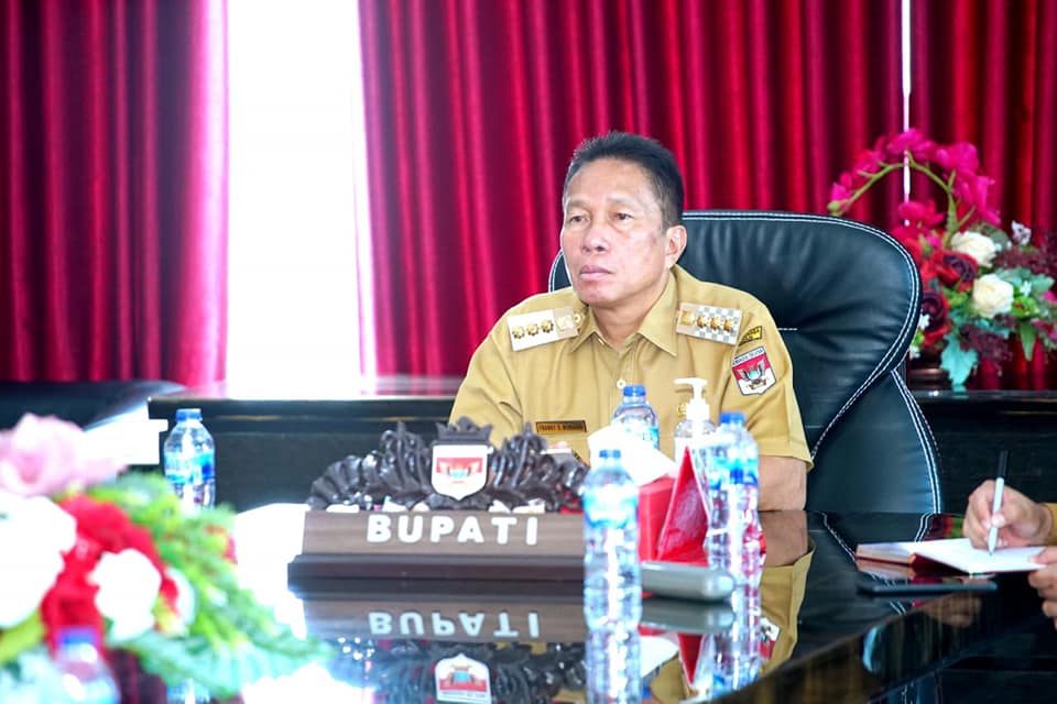 Bupati Minahasa Selatan Bpk. Franky Donny Wongkar, SH, bersama FORKOPIMDA Kabupaten Minahasa Selatan, didampingi oleh Asisten Perekonomian & Pembangunan Sekda, Inspektur Daerah, Kepala Dinas Pertanian, Kepala Bapelitbangda, Kepala Dinas Sosial, Kepala Dinas Perhubungan, Kepala Dinas PUTR, Kepala Dinas Tenaga Kerja, Kepala Dinas Koperasi & UKM, Kepala Bagian Perekonomian Setda, Kepala Bagian Pembangunan Setda, mengikuti Rapat Koordinasi Pengendalian Inflasi Tahun 2023 secara online yang diselenggarakan oleh Kementerian Dalam Negeri RI, bertempat di Kantor Bupati Minahasa Selatan. (Geovanny Lontoh)