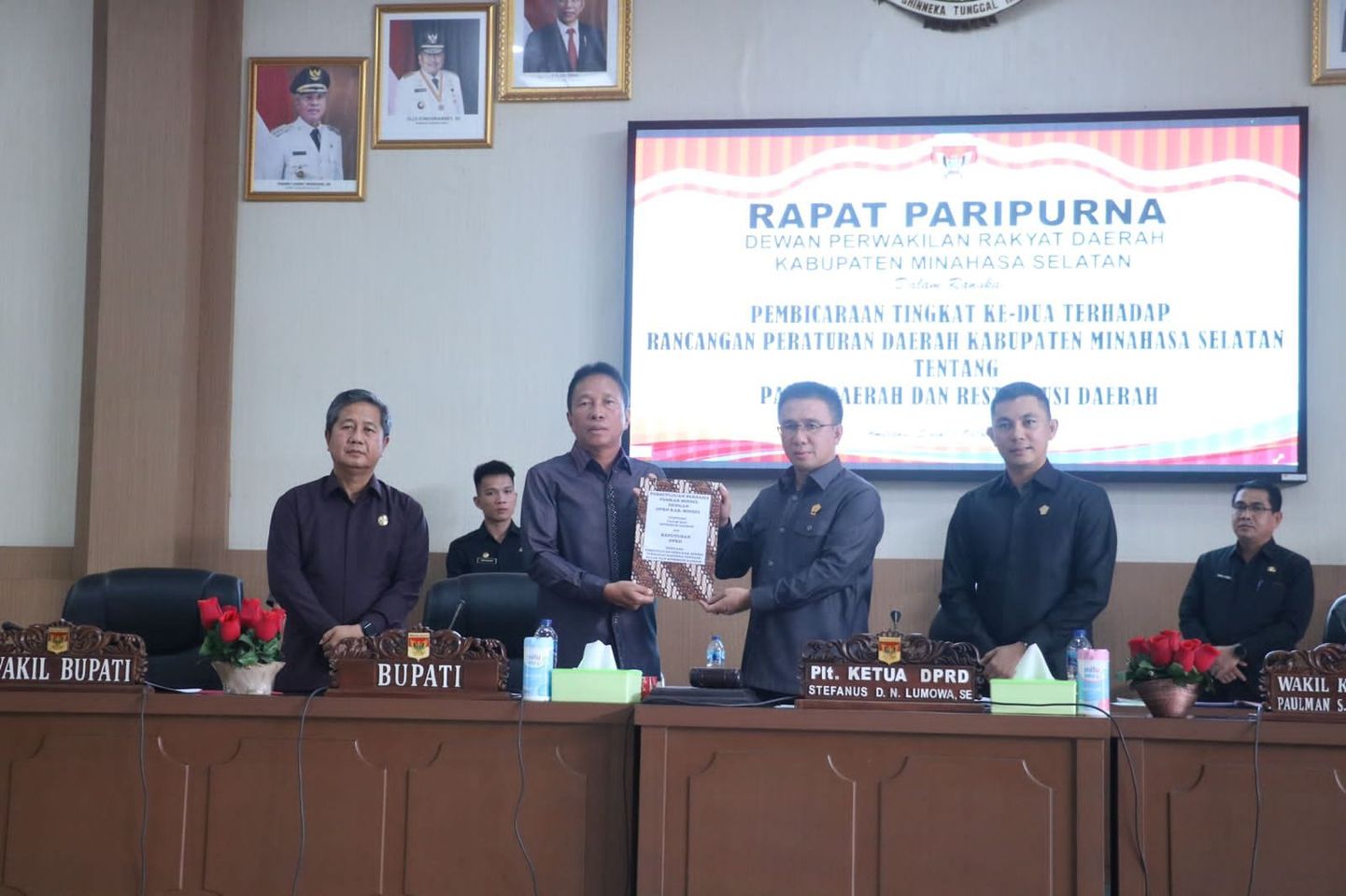 Bupati Minahasa Selatan Bpk. Franky Donny Wongkar, SH., didampingi Wakil Bupati Minahasa Selatan Bpk. Pdt. Petra Yani Rembang, mengikuti Rapat Paripurna DPRD dalam rangka Pembicaraan Tingkat Ke-Dua Terhadap Rancangan Peraturan Daerah Kabupaten Minahasa Selatan Tentang Pajak Daerah dan Retribusi Daerah, bertempat di Ruang Rapat DPRD Kabupaten Minahasa Selatan.
