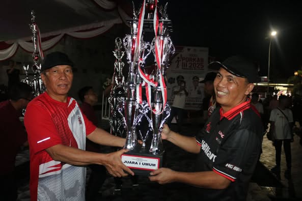 Penyerahan Piala dan Medali kepada Kontingen dan Atlit yang berprestasi pada kegiatan Closing Ceremony/Acara Penutupan Pekan Olahraga Kabupaten (PORKAB) III Minahasa Selatan Tahun 2025